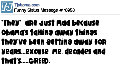 X says "They" are just mad because Obama's taking away things they've been getting away for years...excuse me, decades and that's.....GREED.