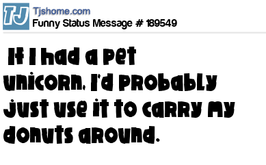 X says If I had a pet unicorn, I'd probably just use it to carry my donuts around.