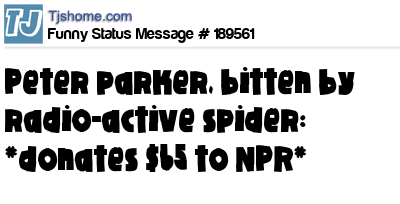 X says peter parker, bitten by radio-active spider: *donates $65 to NPR*