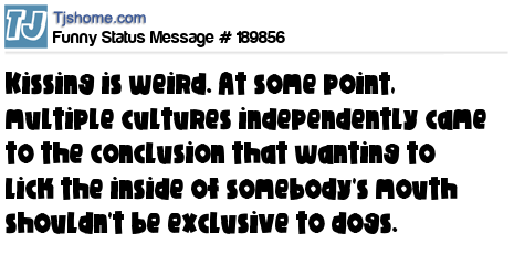 - # 115000 Kissing is weird as hell. "Um I really like you so I'm going to taste the inside of your face for a little while."