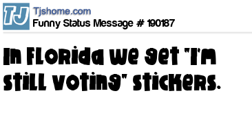 - # 197933 If you don't have your Florida ID with you on voting day, you can always show them a photo of yourself wearing a tank top to a funeral.
