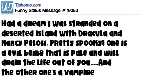 X had a dream I was stranded on a deserted island with Dracula and Nancy Pelosi. Pretty spooky! One is a evil being that is pale and will drain the life out of you.....And the other one's a vampire