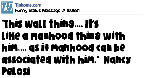 X is "This wall thing.... It's like a manhood thing with him.... as if manhood can be associated with him." Nancy Pelosi