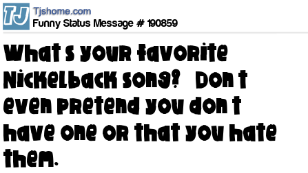 X says What’s your favorite Nickelback song? Don’t even pretend you don’t have one or that you hate them.