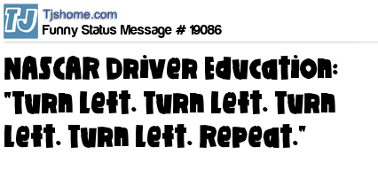 X NASCAR Driver Education: "Turn left. Turn left. Turn left. Turn left. Repeat."