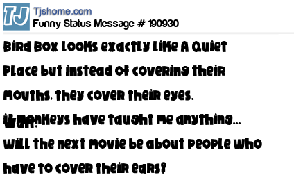 X is Bird Box looks exactly like A Quiet Place but instead of covering their mouths, they cover their eyes.