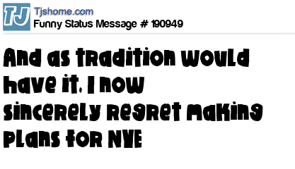 X says And as tradition would have it, I now sincerely regret making plans for NYE