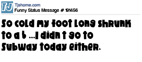 - # 163685 Its so cold outside that by the time I walked back to the car, the footlong I got at Subway shrunk to a 6 inch..