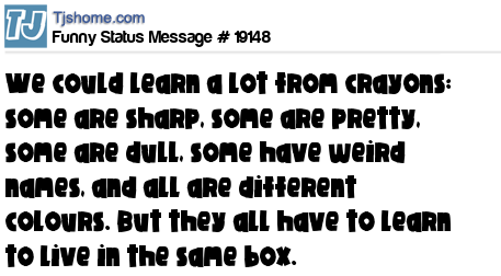 - # 89046 ..We can learn a lot in life from our crayons we had as kids; some are dull, some are bright, and they are all different colors, but they have to learn to live in the same box..(",)