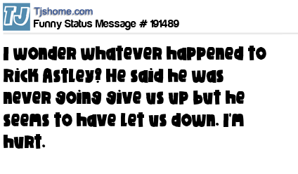 X says I wonder whatever happened to Rick Astley? He said he was never going give us up but he seems to have let us down. I'm hurt.