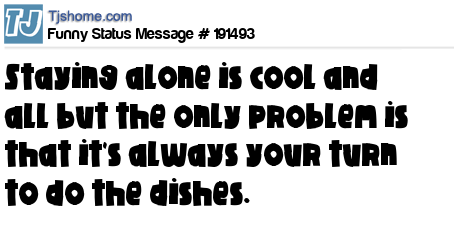 X says Staying alone is cool and all but the only problem is that it's always your turn to do the dishes.