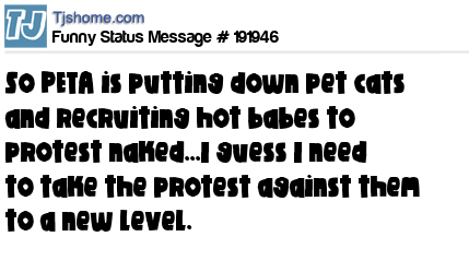 X says So PETA is putting down pet cats and recruiting hot babes to protest naked...I guess I need to take the protest against them to a new level.