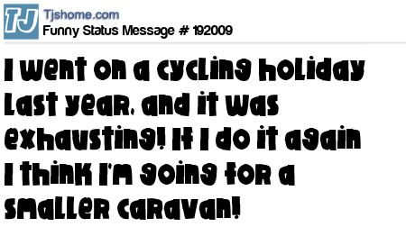 X is I went on a cycling holiday last year, and it was exhausting! If I do it again I think I'm going for a smaller caravan!