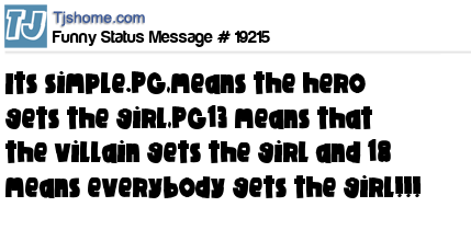 X says Its simple.PG,means the hero gets the girl,PG13 means that the villain gets the girl and 18 means everybody gets the girl!!!