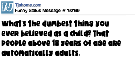 X says What's the dumbest thing you ever believed as a child? That people above 18 years of age are automatically adults.