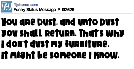 X says You are Dust, and unto Dust you shall return. That's why I don't dust my furniture. It might be someone I know.