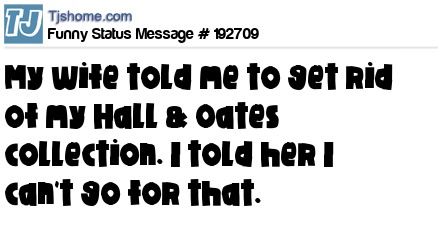 X says My wife told me to get rid of my Hall & Oates collection. I told her I can't go for that.
