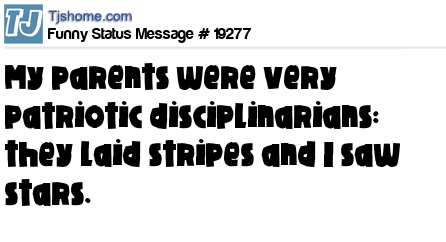 X My parents were very patriotic disciplinarians: they laid stripes and I saw stars.