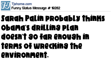 X Sarah Palin probably thinks Obama's drilling plan doesn't go far enough in terms of wrecking the environment.