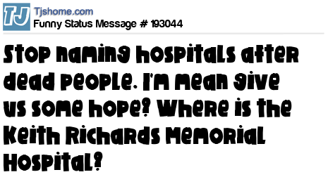 X says Stop naming hospitals after dead people. I'm mean give us some hope? Where is the Keith Richards Memorial Hospital?
