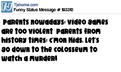 X says  parents nowadays: video games are too violent  parents from history times: c'mon kids, let's go down to the colosseum to watch a murder!