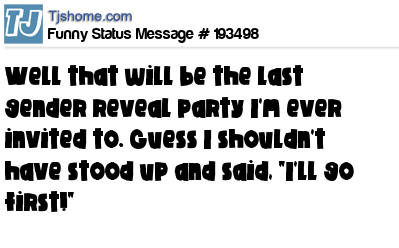 X is Well that will be the last gender reveal party I'm ever invited to. Guess I shouldn't have stood up and said, "I'll go first!"