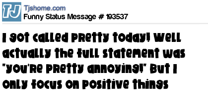 X says I got called pretty today! Well actually the full statement was "you're pretty annoying!" But I only focus on positive things