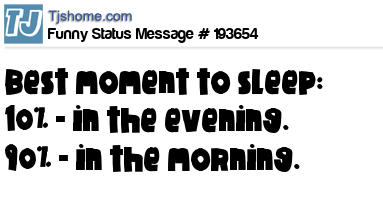 - # 205287 Best moment to sleep: 5% - in the evening, 95% - in the morning.