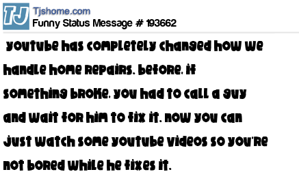 X says youtube has completely changed how we handle home repairs. before, if something broke, you had to call a guy and wait for him to fix it. now you can just watch some youtube videos so you're not bored while he fixes it.