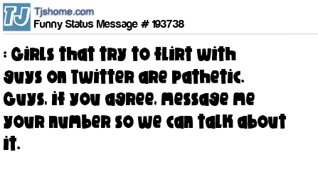 X says : Girls that try to flirt with guys on Twitter are pathetic. Guys, if you agree, message me your number so we can talk about it.