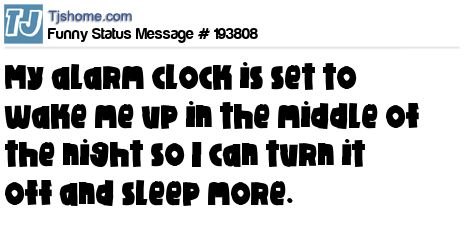 X says My alarm clock is set to wake me up in the middle of the night so I can turn it off and sleep more.