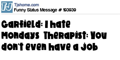X says Garfield: I hate Mondays Therapist: You don't even have a job