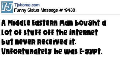 X A Middle Eastern man bought a lot of stuff off the internet but never received it. Unfortunately he was E-gypt.
