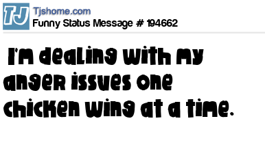 X says I'm dealing with my anger issues one chicken wing at a time.