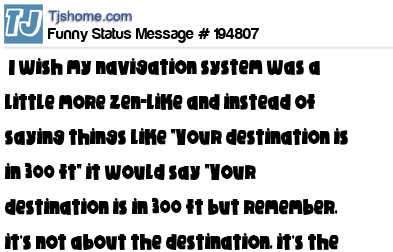 - # 173814 "In 300 feet you will arrive at your destination. But it was never about the destination. It was about the journey." -Buddhist GPS