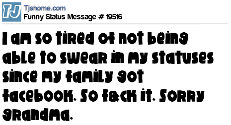 X is i am so tired of not being able to swear in my statuses since my family got facebook. So f&ck it. Sorry grandma.