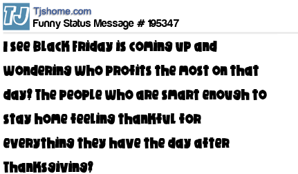 X is I see Black Friday is coming up and wondering who profits the most on that day? The people who are smart enough to stay home feeling thankful for everything they have the day after Thanksgiving?