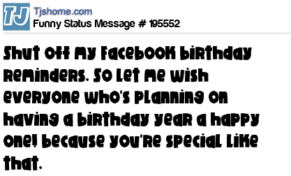 X is Shut off my Facebook birthday reminders. So let me wish everyone who's planning on having a birthday year a happy one! because you're special like that.