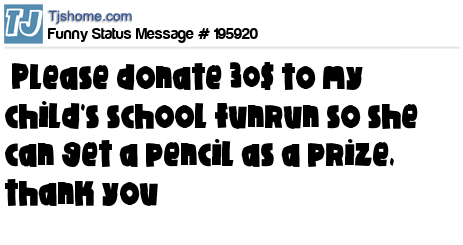 X says Please donate 30$ to my child's school funrun so she can get a pencil as a prize, thank you