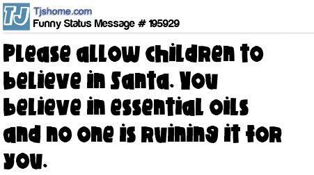 X says Please allow children to believe in Santa. You believe in essential oils and no one is ruining it for you.