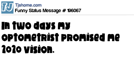 - # 94717 My Optometrist told me in 8 years I'd have 2020 vision.