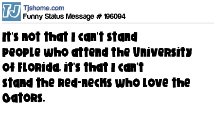 X says It's not that I can't stand people who attend the University of Florida, it's that I can't stand the red-necks who love the Gators.