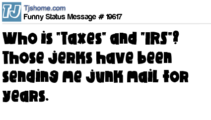 X says Who is "Taxes" and "IRS"? Those jerks have been sending me junk mail for years.