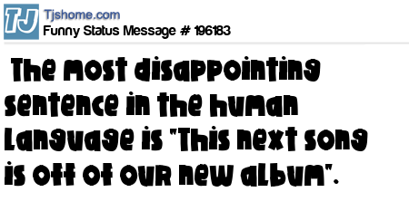 X says The most disappointing sentence in the human language is "This next song is off of our new album".