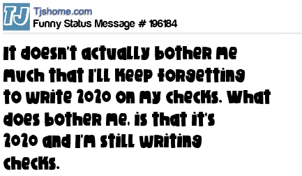 X says It doesn't actually bother me much that I'll keep forgetting to write 2020 on my checks. What does bother me, is that it's 2020 and I'm still writing checks.