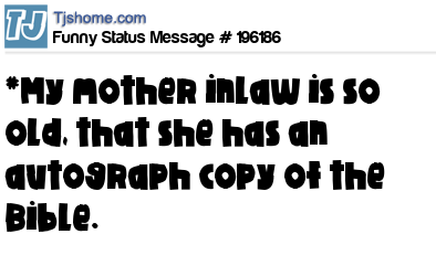 X is *My mother inlaw is so old, that she has an autograph copy of the Bible.