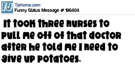 X says It took three nurses to pull me off of that doctor after he told me I need to give up potatoes.