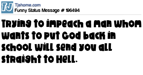 X says Trying to impeach a man whom wants to put God back in school will send you all straight to Hell.