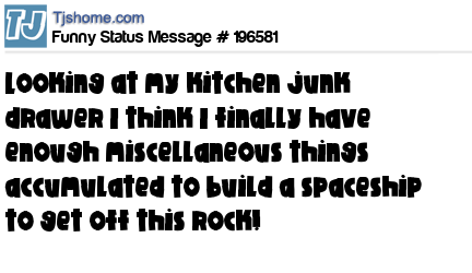 - # 198570 Wonder if I have enough things in my kitchen junk draw to build a rocket ship to get me off this rock?
