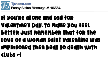 - # 195340 To make you feel better if you're single this Valentine's Day just remember, Saint Valentine was imprisoned then beat to death with a club.